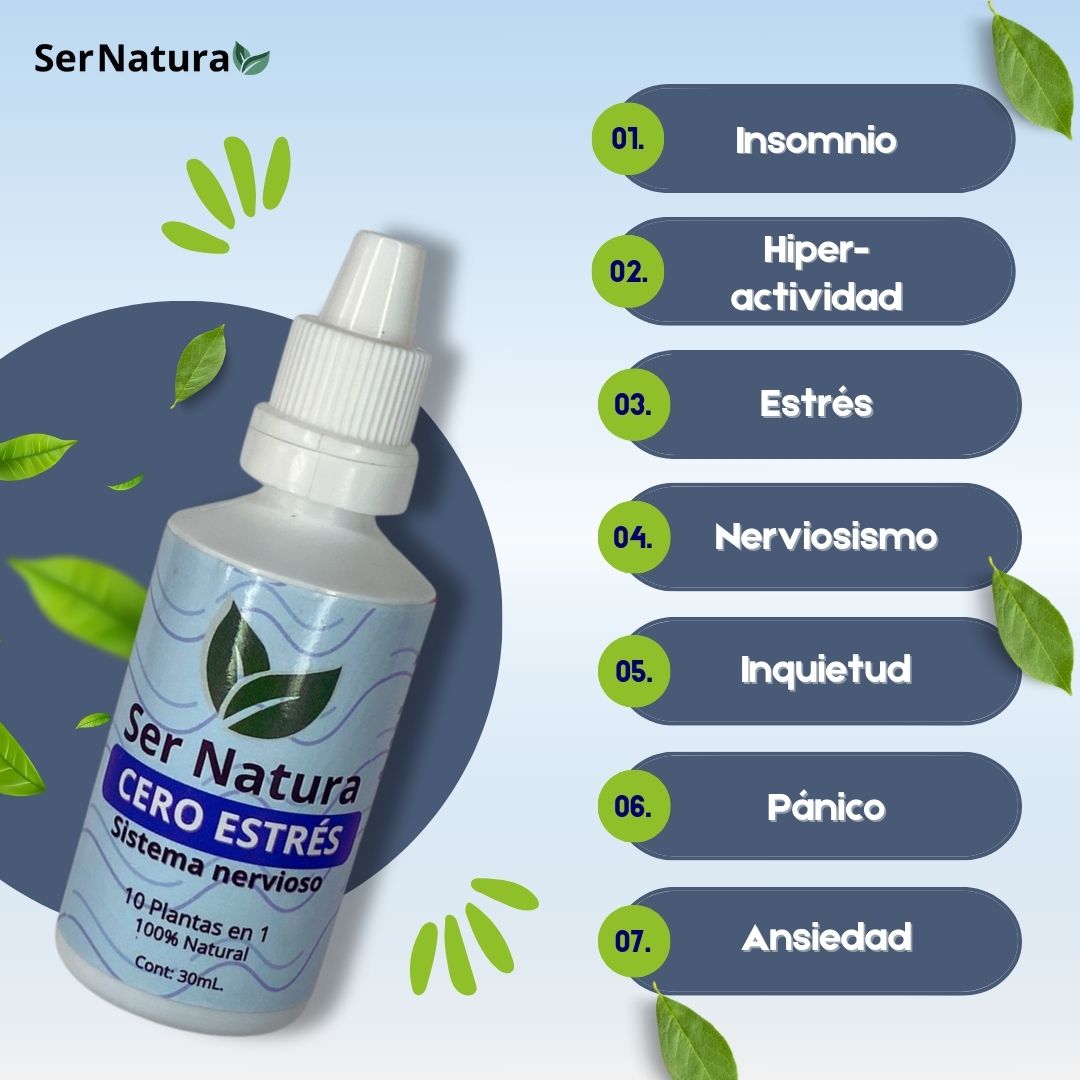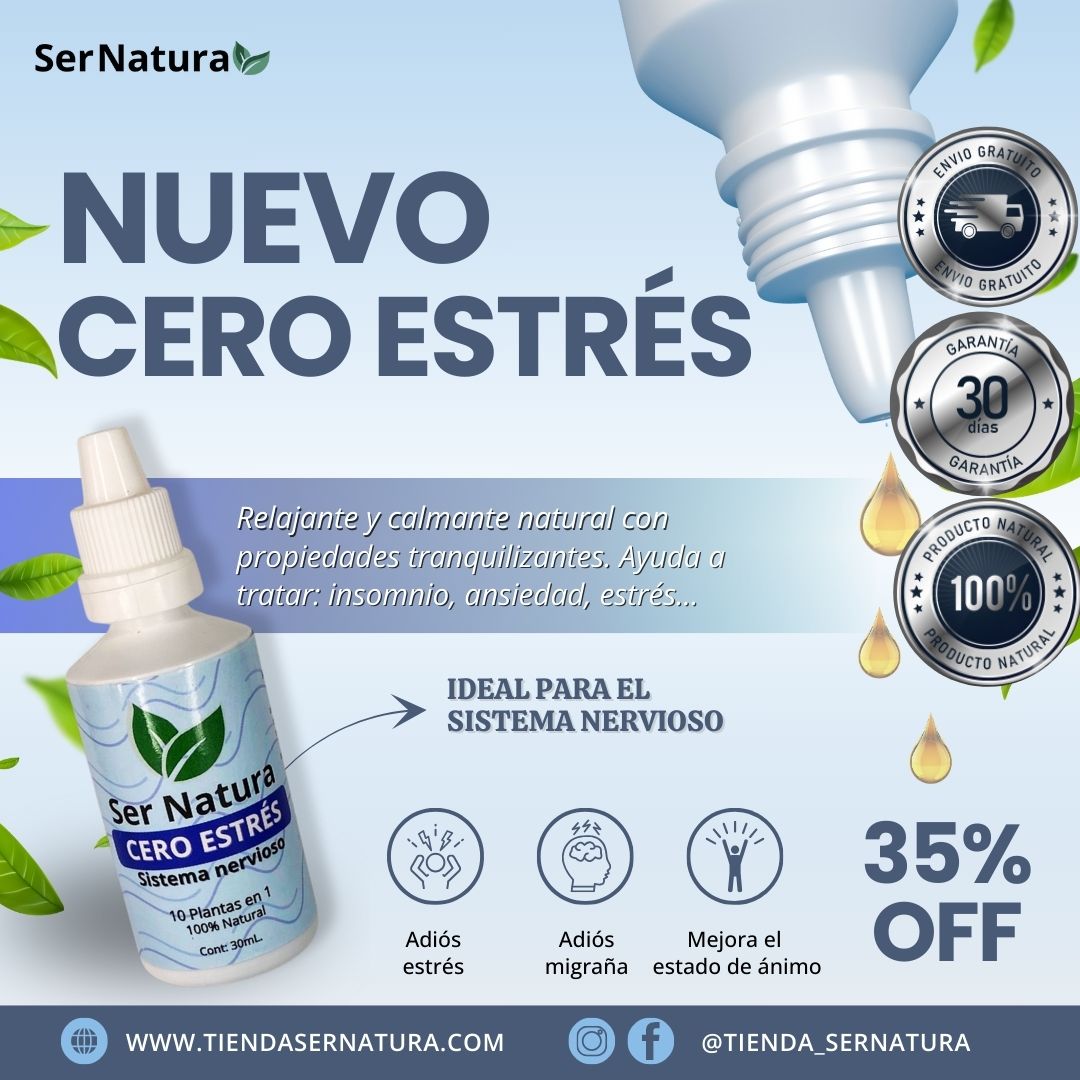 Deshazte del estrés y la ansiedad -Cero Estrés esta formulado especialmente para Relajarte y calmarte naturalmente por sus propiedades tranquilizantes. ayudándote a manejar las alteraciones nerviosas de manera efectiva.